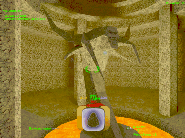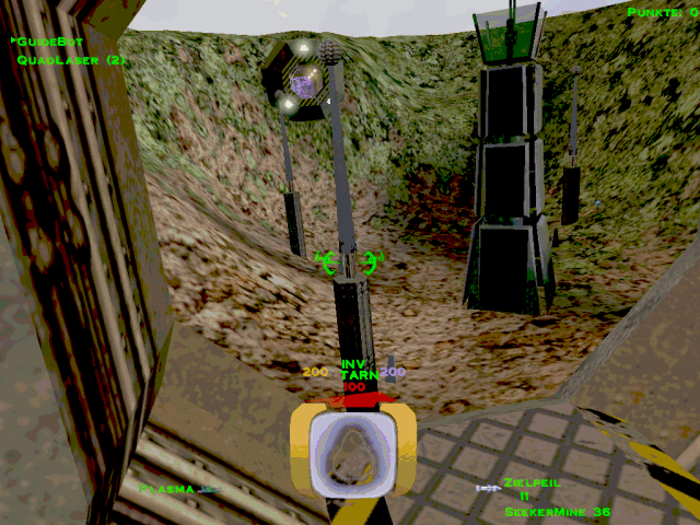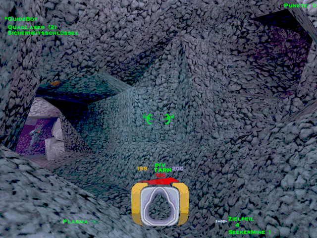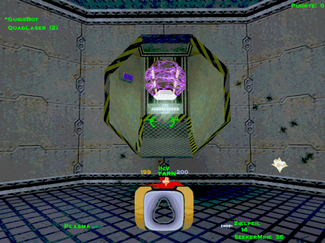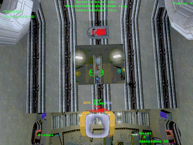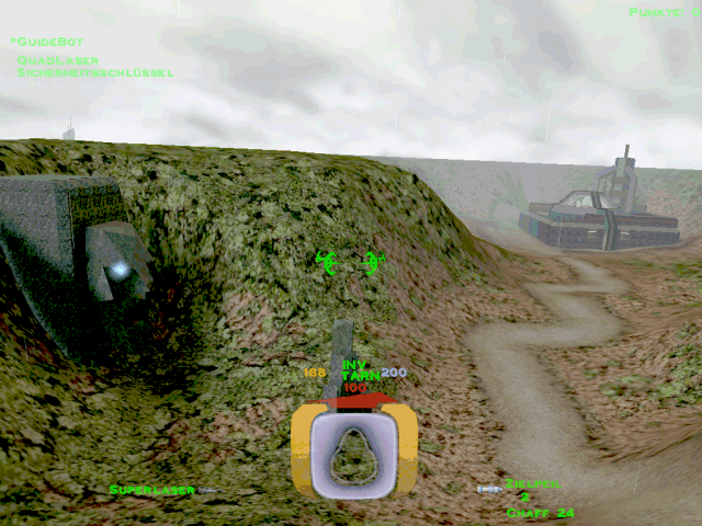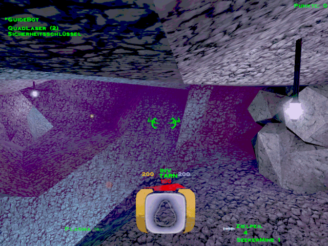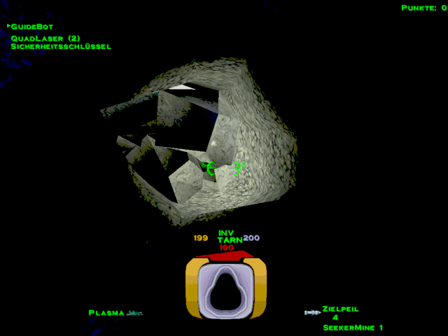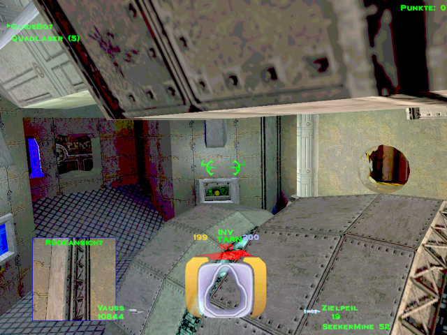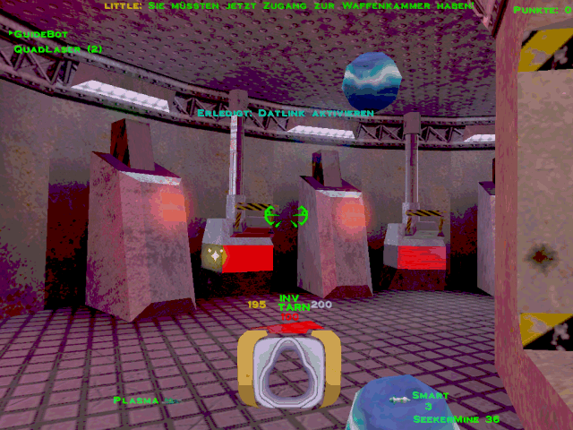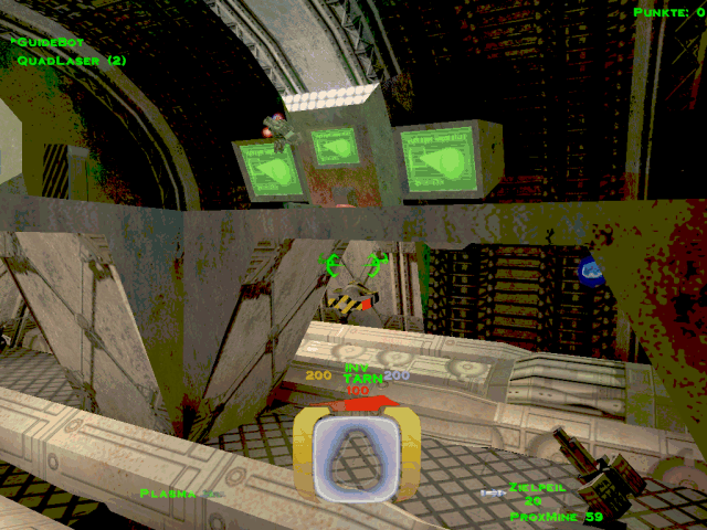 ![]() [ nach oben ] Das erste Level mit mehr als nur einer Seite Informationen. ![]() [ nach oben ] Zu Beginn arbeitet man sich hinter dem Guidebot vorwärts bis zu diesem Raum mit den drei Monitoren vor dem ein Tubbs freundlich auf Dich wartet. Rechts und Links unter den Laufstegen sind Geschütze und unter den Monitoren ist ein Schalter, mit dem man das Kraftfeld zur linken Seite deaktivieren kann. Bis auf ein paar Waffen und einige Gegner, gibt es dort jedoch nichts zu erledigen. Der Weg führt dich weiter nach rechts... ![]() [ nach oben ] ...in einen Raum mit einem Geschütz an der Decke. Unter dem Teil stehen Kisten mit Schrapnell und die explodieren sofort wenn sie getroffen werden. Rechter Hand - diese Ansicht - versperrt ein Kraftfeld den Weg zur Oberfläche. Geradeaus geht eine Tür zum Kraftfeldschalter durch ein Energiezentrum. Natürlich bewacht. ![]() [ nach oben ] Hat man das Kraftfeld abgeschalten, sollte man sich vorsichtig dem Außenbereich nähern. Blitze schlagen in den Türmen ein und jeder dritte Blitz wird in deine Richtung entladen. Ein unzerstörbarer Hauptturm, der alle selbstlenkenden Raketen anzieht, wird von vier Masten umschlossen, die jeweils an der unteren schmalen Stelle (Fadenkreuz) angreifbar sind. Hat man alle vier Türme erledigt, muss man nur noch warten bis der Hauptturm explodiert und das im Hintergrund sichtbare Kraftfeld deaktiviert. Auf dem Weg zum nächsten Tunnel kann man sich die Zeit mit den Kugeln vertreiben, die sich problemlos herumballern lassen. ![]() [ nach oben ] Im Zugangstunnel unter der Decke ist wieder ein Geschütz und danach geht es steil abwärts. Unten angekommen ist 90° rechts der Tür ein Geheimraum mit Powerups. ![]() [ nach oben ] Im nachfolgenden Gang wartet am Ende ein Tubbs, aber als erstes sollte man hier links abbiegen und ein Nebenziel erledigen. ![]() [ nach oben ] Ein flacher Tunnel führt zum Datenraum (Tür rechts), der jedoch noch verschlossen ist. Geradezu ist ein Geheimraum und links geht es weiter zu einem Kraftfeld vor der Waffenkammer. ![]() [ nach oben ] Die hier sichtbare Waffenkammer hat ein Kraftfeld, aber das wird nur im Datenraum deaktiviert. Also biegt man hier wieder links ab. ![]() [ nach oben ] Am Ende des Ganges gibt es rechts und links je eine Kammer mit einem Schalter. Einfach beide Schalter betätigen. Beim Betätigen des zweiten Schalters taucht unten links die geöffnete Tür zum Datenraum auf. ![]() [ nach oben ] Leider wurde mit dem Datenlink auch das Matcen am Boden vor dem Datenraum aktiviert und man hat kaum die Zeit sich auf die Schalter im Datenraum zu konzentrieren. Denn auf der linken Seite muss der linke Schalter oben und der rechte nach unten zeigen. ![]() [ nach oben ] Auf der rechten Seite müssen beide Schalter nach oben zeigen. Sobald man das geschafft hat und noch lebt, kann man die Flucht zur Waffenkammer antreten und sich neue Munition besorgen. ![]() [ nach oben ] Dabei den Guidebot ausklinken, damit auch er sich den Powerup holen kann. Danach geht es wieder zurück zum Hauptgang an dessen Ende der Tubbs gewartet hat. Durch die Tür und den Gang entlang. ![]() [ nach oben ] Bis man zu dieser Kreuzung kommt. Die Tür geradeaus ist verschlossen und links um die Ecke ist ein Energiezentrum. Es geht also erst einmal nur nach rechts weiter. ![]() [ nach oben ] In diesem großen Raum ist in der linken Wand eine Geheimtür und unten ein Gang zu einem Energiezentrum mit ein paar gefährlichen Kisten. Das kann man auch auf dem Rückweg erledigen. Zuerst geht es hier rechts durch die Tür. ![]() [ nach oben ] Durch den Gang bis zu einem sehr großen Raum. Dort warten ungewöhnlich aufdringliche Brandhelfer. Falls man nicht die Nerven oder die Schilde verliert, kann man sich durch eine Geheimtür (hier direkt über dem rechten Teil des Fadenkreuz) mit einer Tarnung ausrüsten, die einem beim Klau des Datenschlüssel und der darauf folgenden Flucht sehr dienlich ist. ![]() [ nach oben ] Mit dem Schlüssel kann man nun die Tür öffnen und sich den Weg in den Untergrund bahnen. ![]() [ nach oben ] Der Guidebot sieht den Gang hier rechts nicht und fliegt zielstrebig daran vorbei. Dort gibt es zwar nur ein paar Powerups und einen sehr dunklen Tunnel, aber ein Besuch lohnt sich trotzdem. Etwas im Hintergrund sieht man helle Felsblöcke im Gang, die man unbedingt zerstören sollte. ![]() [ nach oben ] Denn hinter diesen Felsblöcken, hier rechts, ist ein Geheimraum mit nützlichen Sachen. Natürlich auch für den Guidebot. ![]() [ nach oben ] Am Ende des immer dunkler werdenden Tunnels versperren weitere Felsblöcke den Ausgang zur Oberfläche. Wegballern und durch geschlüpft. Draußen regnet es nicht nur, sondern es hagelt auch gelenkte Raketen und kleine Panzer machen Zielübungen. Also niemals stehen bleiben und nicht zu hoch fliegen. ![]() [ nach oben ] Durch ein kleines Tal geht es durch einen Mund in diese Lavahöhle. Man kann zwar ganz fix durch fliegen, aber dann entgehen einem nicht nur nützliche Powerups, sondern auch beschauliche Architektur. Rechts und links in den Wänden der Höhle gibt es Gänge mit Räumen am Ende. Nicht ganz ungefährlich, aber sehenswert. ![]() [ nach oben ] Besonders der Raum mit dem Zugangstunnel rechts unten bietet beeindruckende Skulpturen und drei weitere Gänge mit Powerups. ![]() [ nach oben ] Nach dem Bestaunen der Räume und einsammeln der Powerup geht es weiter durch die Lavahöhle und auf der anderen Seite wieder nach oben an die Oberfläche. Hier gibt es wieder Panzer und ein Stinger feuert gelenkte Raketen auf Dich. Entweder noch etwas im Höhlenausgang verstecken oder wagemutig an die frische Luft zum Laborgebäude im Hintergrund. ![]() [ nach oben ] Im Dachbereich sind Glasscheiben, die sich nur mit ballistischer Munition zerstören lassen. Blick man nun in den Hauptschacht nach unten, sieht man diesen Anblick. Jeder Steg führt zu einer Tür, jedoch ist nur die Tür auf 12 Uhr wichtig, denn diese Tür führt zur Datenkassette. Die Tür 