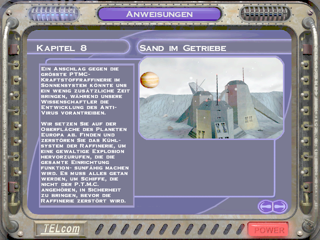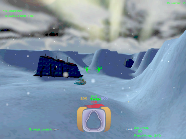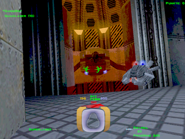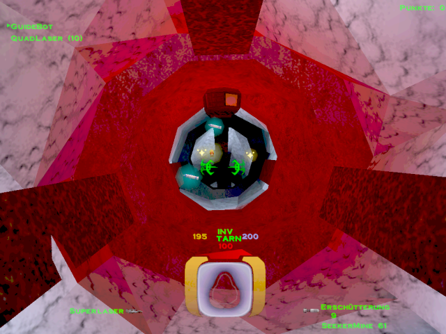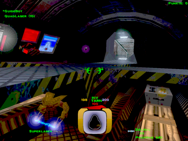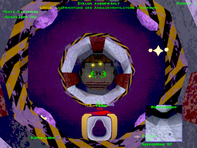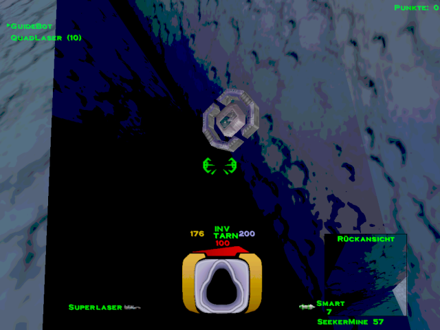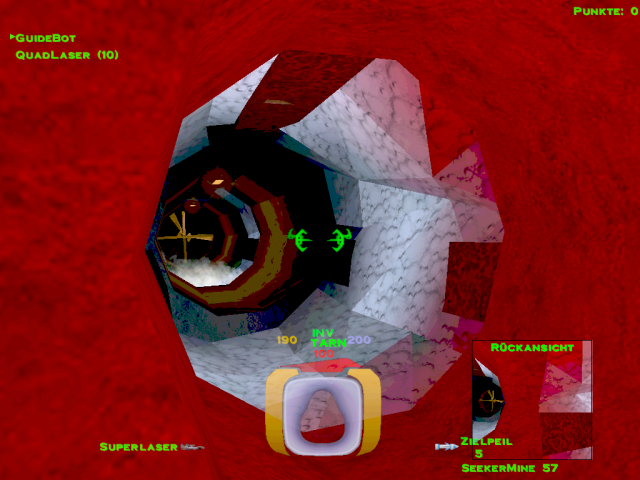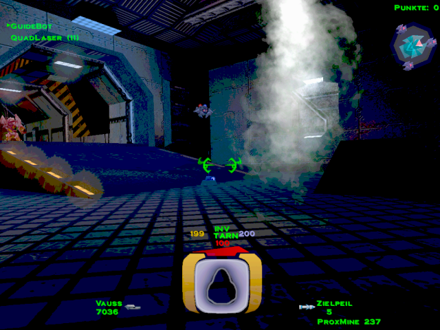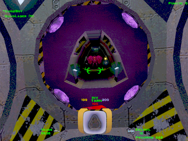 ![]() [ nach oben ] Im Level 5 war man noch darüber empört, dass man als Terrorist bezeichnet wurde und nun soll man einen Anschlag auf die größte Kraftstoffraffinerie im Sonnensystem verüben, nur um ein wenig zusätzliche Zeit zu gewinnen. Auch wenn man eine Krankenfregatte vor der Zerstörung retten soll, welche nicht der P.T.M.C. angehört, so stellt sich doch die Frage, welcher PTMC-Mitarbeiter sein Leben für die Machenschaften der Firma hingeben würde, wenn er nicht mal darüber informiert wurde - was mehr als wahrscheinlich ist. ![]() [ nach oben ] Durch den höchsten Kühlturm gelangt man mit etwas Geschick in den inneren Bereich der Anlage, in dem man sich bei geschlossener Luke bis zu ihr hinbewegt und sich dann rücklings an die Wand presst, bis sich die Luke erneut öffnet und man mit dem Nachbrenner hineinschlüpft. Innen angekommen, hat man zwei Türen. Eine befindet sich oberhalb in unmittelbarer Nähe der höchsten Ausstoßöffnung. Dahinter befindet sich ein Energiezentrum zum auftanken und ein kleines Waffenlager. ![]() [ nach oben ] Auf der anderen Seite am Boden befindet sich die zweite Tür, durch die man, an einem Matcen vorbei, weiter in die Anlage gelangt. Am Ende des Ganges geht es links zu einer bewachten Waffenkammer. Wir fliegen rechts weiter zur rotierenden Hauptbrennkammer. Die Rotation wird gestoppt, in dem man die drei rot leuchtenden Bleche zerstört. Danach bliebt der Brenner am Zugangstunnel stehen und die Brennerflamme erlischt. Man kann dann gefahrlos hineinfliegen. Am Boden des Schachtes befindet sich eine Tür. ![]() [ nach oben ] Hier angelangt, findet man links den Schalter für das Kühlsystem. Eigentlich kann man nun umdrehen und wieder an die Oberfläche zurückkehren, aber ein paar Powerups kann man noch mitnehmen und nebenbei nettes Interieur bestaunen. Geradeaus geht es zu besagten Zusätzen und rechts durch die Tür findet man im Zentrum einer rohrdurchzogenen Halle die komplette Karte der Anlage damit man auch versteckte Räume leicht findet. ![]() [ nach oben ] Falls man sich doch entschließen sollte geradeaus einen Abstecher in die Sackgasse zu machen, trifft man auf nette Gegenwehr und diesen Verladehangar mit leeren Halteklauen. In einem identischen Raum etwas weiter in der Anlage ist dort ein riesiger Container. Die Kraftfelder scheinen sich nicht abschalten zu lassen, oder ich habe keinen Schalter dafür gefunden. Danach geht es zurück am Schalter für das Kühlsystem vorbei durch die Lüftungstürme an die Oberfläche. ![]() [ nach oben ] Wieder an der Oberfläche fliegt man zu den drei Kühltürmen und zerstört deren Kern. Wenn man durch den Deckel hineinschaut, sieht man den Schalter für das Kraftfeld und nach dessen Betätigung kann man den Kern zerstören. ![]() [ nach oben ] Nach dem man den Kern zerstört hat, kann man auch noch die vier Lüfter in dessen Umfeld zerstören und die geheimen Bereiche von Powerups befreien. Diese Lüfter befinden sich in allen drei Türmen, aber leider ist nicht hinter jedem Lüfter ein tolles Waffenarsenal. ![]() [ nach oben ] Der dritte Turm wird durch Lenkraketen geschützt und ist entsprechend vorsichtig anzufliegen. Selbes Vorgehen bis zu der Lüfterzerstörung. Da wo sonst der vierte Lüfter wäre, ist nun eine Tür. ![]() [ nach oben ] Der Eiskanal führt bis an eine Kreuzung mit rotem Warnlicht an der Decke. Rechter Hand ist ein Kraftfeld, welches man abschalten muss. Also biegt man links ab und fliegt in einen Raum über dessen Zugangstür der Schalter für das Kraftfeld ist. Ein Schuss und der Weg ist frei. Zurück über die Kreuzung und durch den Eiskanal. Der Guidebot möchte zwar weiter fliegen, aber er wird vorübergehend ins Schiff geholt, damit man ungestört ein fettes Geheimnis lüften kann. ![]() [ nach oben ] Der nun folgende Gang hat eine Öffnung, aber da befinden sich nur ein paar Robots, die einem den Tag vermiesen wollen. Also einfach schnell weiter geradeaus bis zur nächsten Kreuzung. ![]() [ nach oben ] An der nächsten Kreuzung ist wieder eine rote Warnleuchte und geradezu ist ein Lüfter. Hier wendet man sich zuerst nach links und sieht einen weiteren Lüfter und in Bodennähe einen Dampfstrahl. ![]() [ nach oben ] Dort wo der Dampf hin geblasen wird liegt eine Datenkassette. Ob man auf dem Rückweg noch die Lüfter zerstört und diverse geheime Verstecke ausspäht und deren Powerups einsammelt ist optional. Einfach wieder zurück in den Gang fliegen und erst dort den Guidebot ausklinken und ihm folgen. ![]() [ nach oben ] Plötzlich versperrt ein Matcen den Weg und jeder Robot, den man zerstört, lässt einen neuen Robot entstehen. Am Ende des Ganges ist ein Monsterlüfter, welcher alles in eine Richtung weht. Diesem sollte man sich extrem vorsichtig nähern. Gegenüber an der Wand ist ein Schalter, mit dem man die Richtung umkehren kann. Wenn du nicht weist, in welche Richtung der Lüfter dich weht, dann schieß eine Rakete in den Luftstrahl. Du musst nach oben, denn von dort aus, kannst du den Schalter auch erreichen und du kannst den Lüfter zerstören, indem du die Säule im Zentrum der Decke zum Absturz bringst. In den Wänden gegenüber sind ebenfalls Lüfter, die man zerstören kann, aber da kommt man noch nicht heran. Denn eigentlich geht es nur unten weiter. ![]() [ nach oben ] Im nachfolgenden Gang gibt es noch weitere rote Rundumleuchten, aber die sind nur kleine Umwege durch die Kraftstoffraffinerie. Der Guidbot führt dich zu einem Turm im Eis. Im unteren Bereich sind Öffnungen und dahinter ist nur ein Geschütz und ein Kraftfeld. Da braucht man kein Schiff zu opfern. Lieber im oberen Bereich nachsehen. Dort sind Glasscheiben und zwei Geschütze. Die Scheiben zerstören und hineinfliegen. ![]() [ nach oben ] Direkt im Schacht befindet sich ein Schalter zum Entriegeln der Tür, falls man extrem neugierig ist. Ansonsten den Gang entlang durch ein Energiezentrum und falls man dem Thiefbot begegnet, bestell mal nette Grüße. Der Flug geht durch 