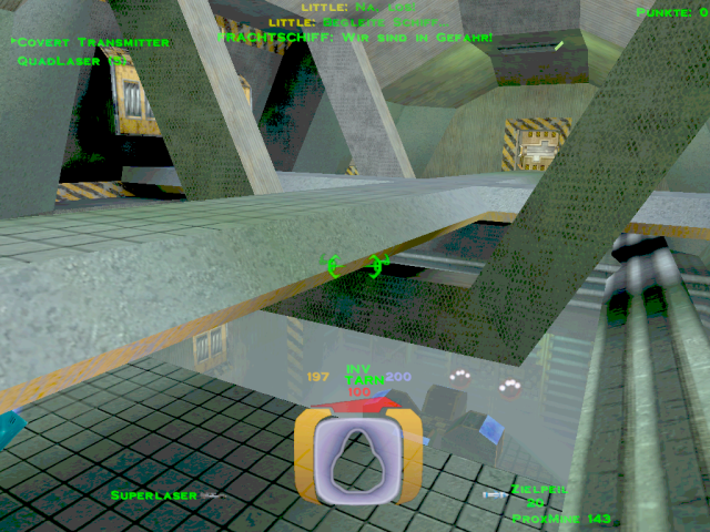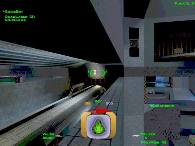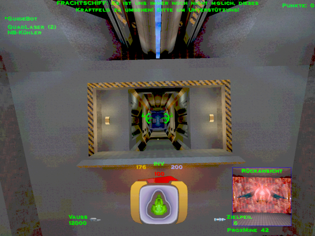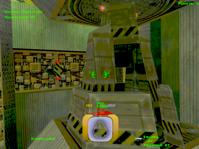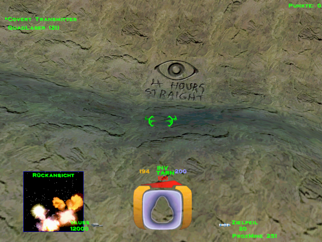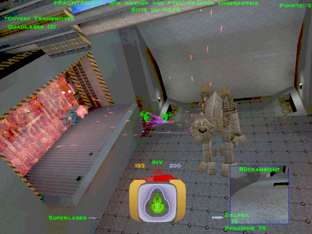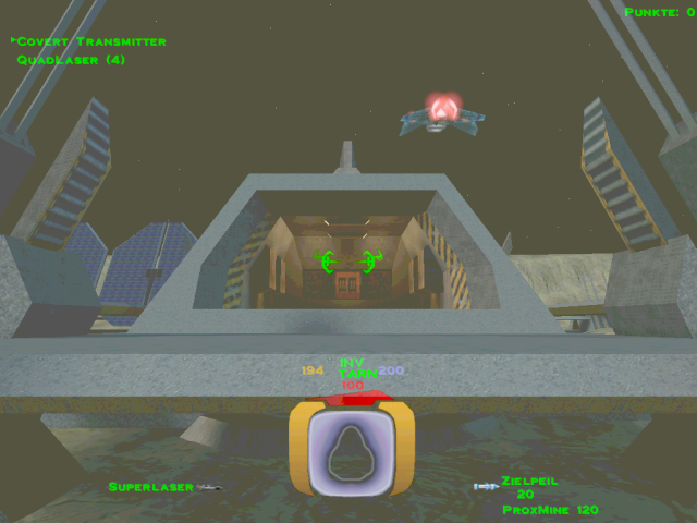 ![]() [ nach oben ] Die Aufgabe ist relativ einfach gehalten, aber schwer durchzuführen. Während sich das Frachtschiff durch die Gluthitze des Merkur dem Hangar nähert, muss man sich selbst unter den Plattformen entlang tasten. Von der Umgebung bekommt man dadurch kaum etwas mit, zumal man das Frachtschiff nicht aus den Augen verlieren sollte. Der Guidebot kann das Schiff zwar suchen, aber bis man es wieder findet, könnte es schon angegriffen worden sein. Zum Glück greift nicht gleich jeder Robot oder Geschütz das Frachtschiff an, so dass man durch seine Anwesenheit das Feuer auf sich lenkt und das Frachtschiff vor Schäden bewart. ![]() [ nach oben ] Das Frachtschiff fliegt unbeirrt durch die Hallen und hat bereits das erste von drei Bauteilen an die Oberfläche gebracht. Immer schön dran bleiben und feuern was das Zeug hält. Falls hinter dem Frachtschiff keine Robots sind, einfach davor setzen und den Weg frei räumen. Sobald man in einem großen Tunnel das Kraftfeld vor sich erkennen kann, sollte man unbedingt etwas voraus fliegen, denn in der Halle vor dem Kraftfeld steht ein Juggernaut mit Lenkraketen. Dieser Kampfroboter ist schwer zu zerstören und man muss schon einiges an Munition aufwenden, um diesen Kollos zur Strecke zu bringen. Das Problem wäre nur halb so groß, wenn das Frachtschiff nicht hier an dem Kraftfeld zum stehen kommen würde und als Zielscheibe dient. ![]() [ nach oben ] Das Frachtschiff muss erst einmal vor dem Kraftfeld warten. Wenn alle Robots in der Nähe des Frachtschiffes zerstört wurden und es sich vorübergehend in Sicherheit befindet, kann man sich zuerst die Karte des Anlage besorgen. Hierzu dreht man sich vom Frachtschiff weg, sodass man in den langen Gang blickt und das Frachtschiff hinter sich hat. ![]() [ nach oben ] Diesen Gang fliegt man bis zum Ende und kann dann rechts oder links durch die Öffnungen ein paar Meter nach oben fliegen. Direkt über dem Gang durch welchen man gerade geflogen ist, befindet sich eine Plasmaleitung, zu der man nun durch einen schmalen Spalt gelangt. ![]() [ nach oben ] Hier kann man sich hineinquetschen und direkt unter der Leitung ist die Karte der Anlage. Sobald man die Karte hat und sich wieder aus dem Spalt gezwängt hat, klinkt man den Guidebot aus und geht auf die Suche nach den vier seismischen Stabilisatoren. ![]() [ nach oben ] Ein erdbebenartiges Stampfen deutet auf die Nähe eines solchen Gerätes hin. Die Stinger sind äußerst lästige Gesellen, weil man in den schmalen Gängen den Lenkraketen nicht ausweichen kann. Am ersten Ziel angekommen, fliegt man nicht sofort zu diesem Stabilisator. In der Halle davor befinden sich unten die vier Unterbrecher, die man in die Stabilisatoren einsetzen muss. Man sammelt die vier Teile ein und kann gleich den ersten Unterbrecher im oben befindlichen Stabilisator einsetzen. Dabei sollte man sich vor dem Einsetzen den Rücken frei machen, denn die Einsetzsequenz behindert deine Manöver und für ein paar Sekunden bist du wehrlos. ![]() [ nach oben ] Zuerst schaltet man den Stabilisator ab. Der Schalter befindet sich immer hinter dem Stampfer. Wenn der Hammer hochgefahren ist, kann man den Unterbrecher einsetzen. Mit den drei anderen Unterbrechern verfährt man genau so. Dabei immer wieder das Bild vom Frachtschiff ansehen, ob es unter Umständen angegriffen wird. Dann sofort dort hinfliegen und es verteidigen. Hat man alle vier Stabilisatoren abgeschalten, fliegt man zum Kraftfeld vor dem Frachtschiff. Man gelangt hinter das Kraftfeld in dem man die Öffnungen unter der Hallendecke auf beiden Seiten benutzt. Auf dem Weg zu den Stabilisatoren ist man bereits dort hindurchgeführt worden. Man kennt den Weg also bereits. Um das Frachtschiff vor Angriffen zu schützen, fliegt man am besten zuerst bis ganz hinter in die letzte Halle. Dort steht ein Bauteil, welches vom Schiff aufgenommen wird. Auf beiden Seiten stehen jedoch Raketenwerfer, die selbstverständlich zerstört werden bevor man die Kraftfelder für das Frachtschiff abschaltet. ![]() [ nach oben ] Durch zwei Kraftfelder hindurch kann man das Frachtschiff sehen und auf beiden Seiten jedes Kraftfeldes sind die Schalter zum deaktivieren. Wenn das zweite Bauteil aufgenommen wurde, wird auch das auf die Oberflächenplattform transportiert und dort abgelegt. Danach fliegt das Frachtschiff tief in die Anlage um das dritte Bauteil zu holen. Wer den Weg des Schiffes kennt, hat den Weg bereits schon vor dem Deaktivieren der Kraftfelder von Robots gereinigt und kann einem entspannten Transport zusehen. ![]() [ nach oben ] Durch einen seltsamen Fehler beim Missionsziel flog das Frachtschiff am Ende langsam davon und die Mission wurde nicht beendet, obwohl alle Ziele erreicht wurden. Durch den God-Mode geschützt konnte ich mich auf der Oberfläche etwas umsehen und entdeckte ganz hinten unter der riesigen Antennenanlage weitere Powerups. Dann flog ich einen großen Bogen rechts um die ganze Anlage in Richtung Startpunkt und entdeckte zwei weitere Transportschiffe die die Bauteile von den Rampen entfernt hatten und eine Warteposition eingenommen haben. Mit dem letzten Bauteil flog das Frachtschiff links am Startpunkt vorbei ebenfalls in eine Warteposition. Dann flog ich über den Turm am Startpunkt hinweg und entdeckte hinter einem Hügel ein seltsames Symbol. Wenn man vom Startpunkt in Richtung Hangar blickt, ist dieses Symbol in ca. 45° rechts hinter einer hohen Hügelkette versteckt. Was auch immer bisher "gerade 4 Stunden" gebraucht hat, scheint hier seine Spur hinterlassen zu haben. Die Transportschiffe stehen vom Startpunkt aus gesehen in 90° links sehr weit entfernt oberhalb deiner maximalen Flughöhe und sind kaum zu erkennen. ![]() [ nach oben ] oder weiter im Level 10 (Mond) |